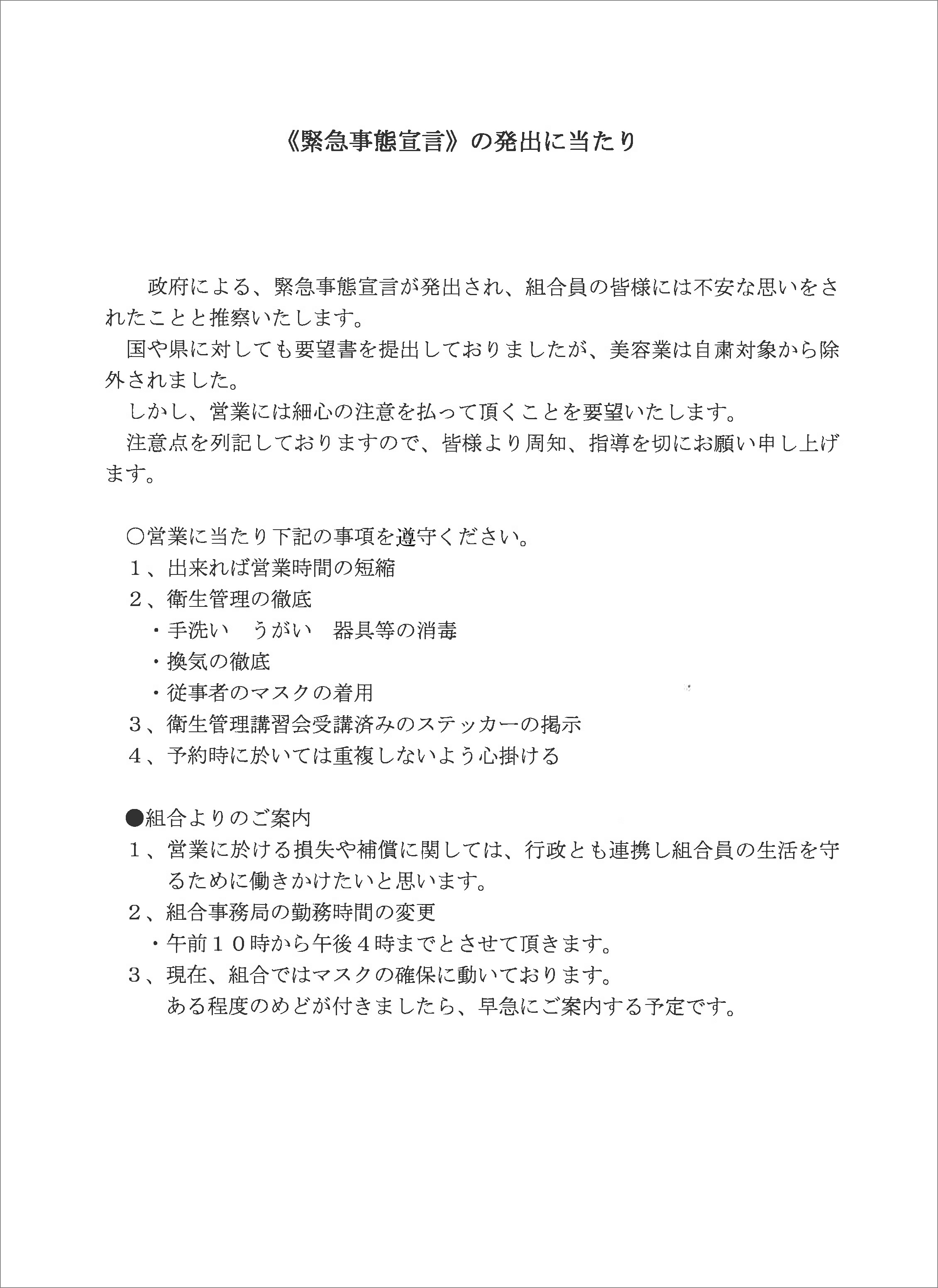 組合員の皆様はもとより、美容業を営む全ての皆様、周知徹底をお願い致します。